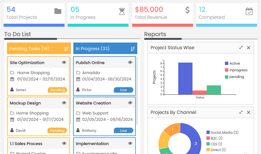 Centralized dashboard with real-time project progress tracking.