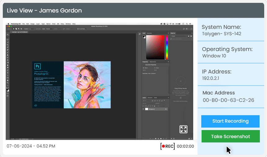 Screen live recording and screen capture at certain defined intervals ensure accurate monitoring of work progress and productivity levels, promoting work transparency and accountability.