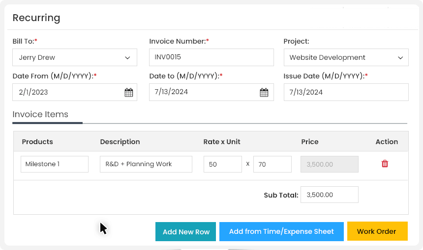 Full project management suite. only bill pre approved hours